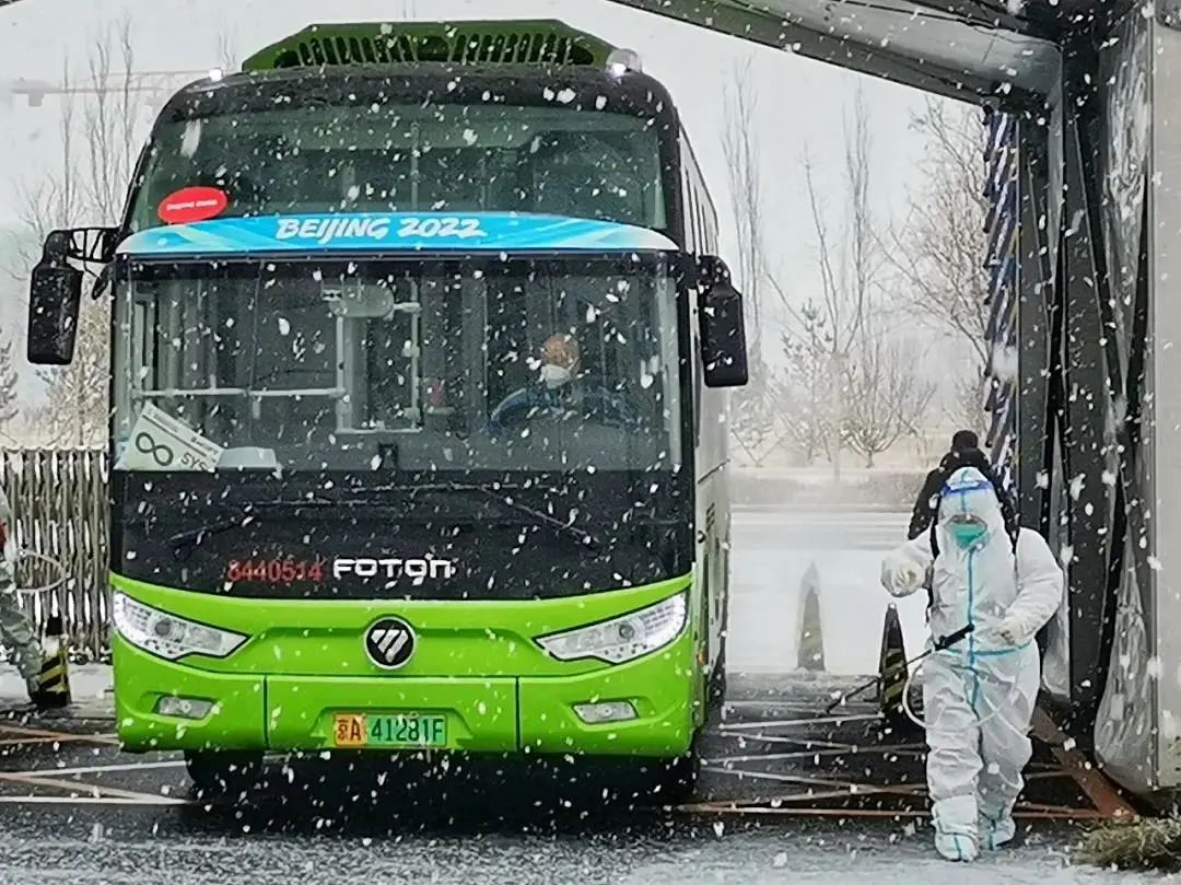 “张家口崇礼赛区,赛事期间欧辉客车单日服务里程达150-200公里。张家口赛区气温低,风雪大,以BJ6906氢燃料客车为代表的欧辉氢燃料客车可以实现零下30摄氏度极寒低温启动、零下40摄氏度极寒低温存放和停机自动保护。”