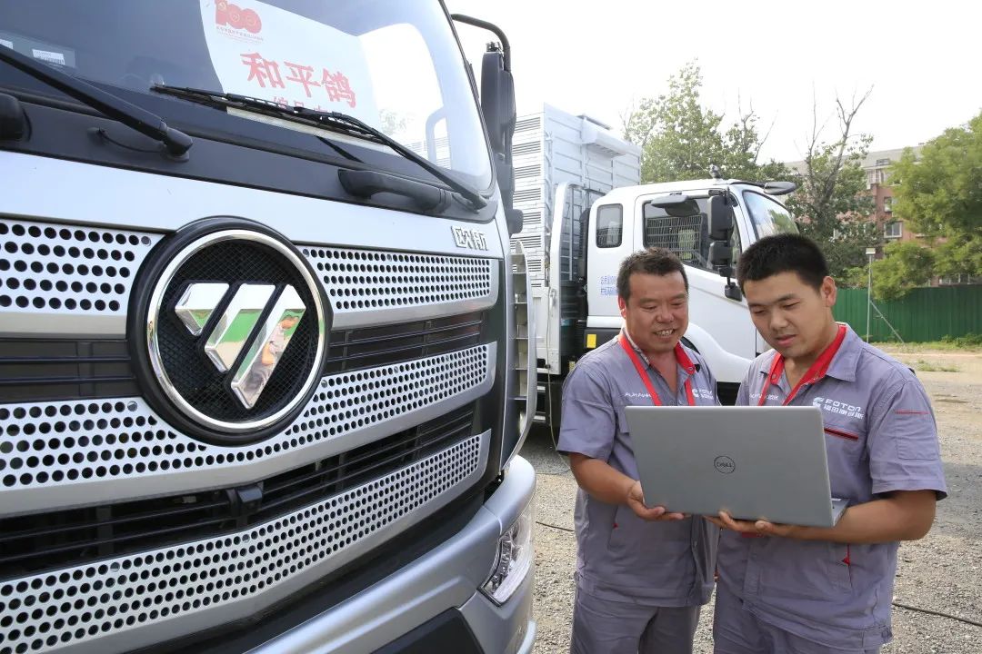 仰望着信鸽翱翔天际,欧航欧马可服务部部长申荣欣与普田物流“和平鸽”车队队长赵书芬击掌相庆。在车辆交付后的两个月时间里,两家北汽福田所属企业、两个服务保障团队密切配合,使车辆以最佳状态出现在大会现场。