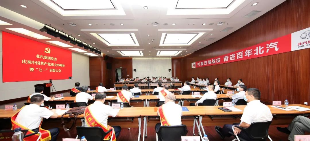 6月30日,北汽集团党委庆祝中国共产党成立99周年暨七一表彰大会在北汽研发基地召开。