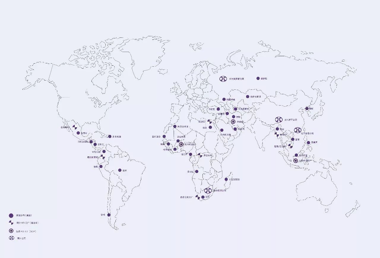 北汽集团响应国家“一带一路”倡议,在海外不断落子,努力实现“世界北汽”的战略构想。北汽集团已在全球47个国家搭建销售网络154家、建设海外产业基地4家、境外公司7家、KD项目22个。