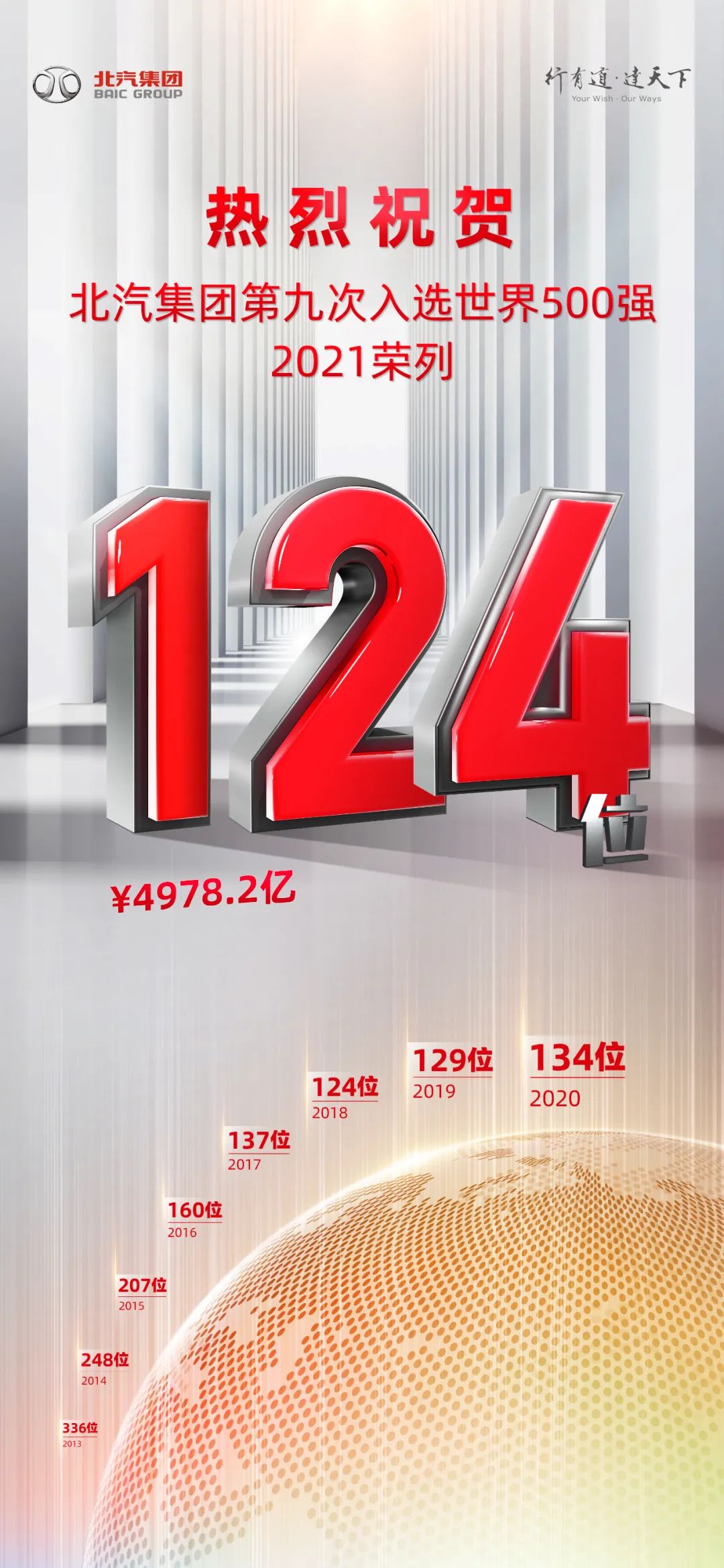 北京时间8月2日,2021《财富》世界500强排行榜正式公布,世界杯官网线上平台营收以4978.2亿元人民币位列排行榜第124位,这是世界杯官网线上平台2013年首次入榜后,连续九年稳居500强行列,八年间攀升了212位。