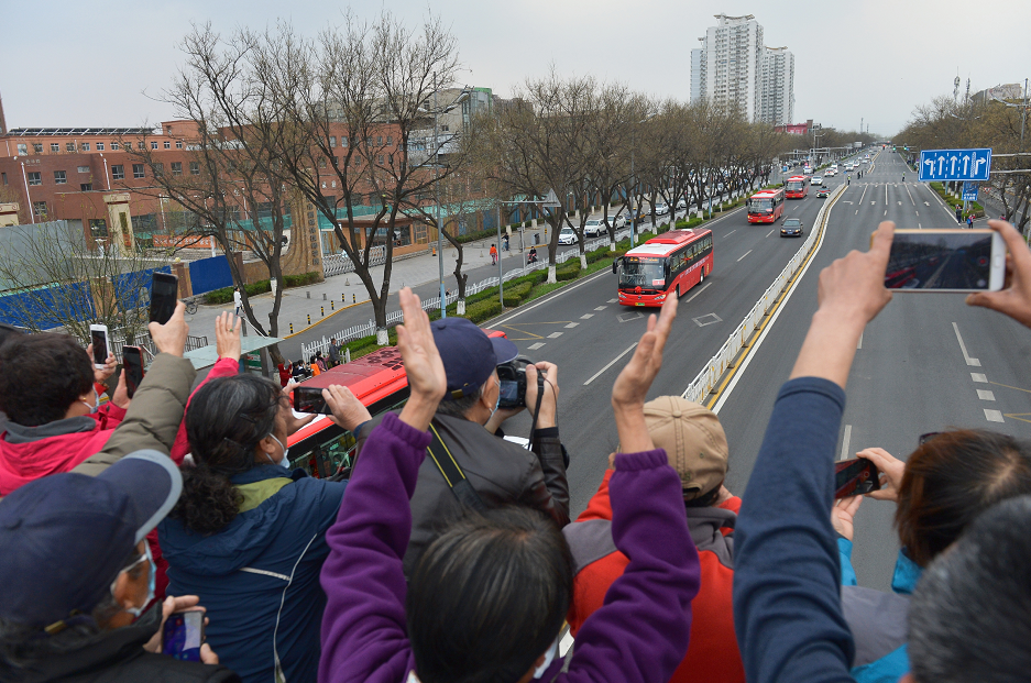 北京市援鄂医疗队自紧急受命支援武汉以来,全体医疗队员不忘初心、牢记使命,以昂扬的斗志、奋发的精神,持续投入疫情防控斗争,一战到底、全胜而归,向武汉人民交出了一份合格的答卷。医疗队荣获全国新冠肺炎防控先进集体,2名队员荣获先进个人。今日归来,看到阔别的家人和同事,很多队员落下了热泪。