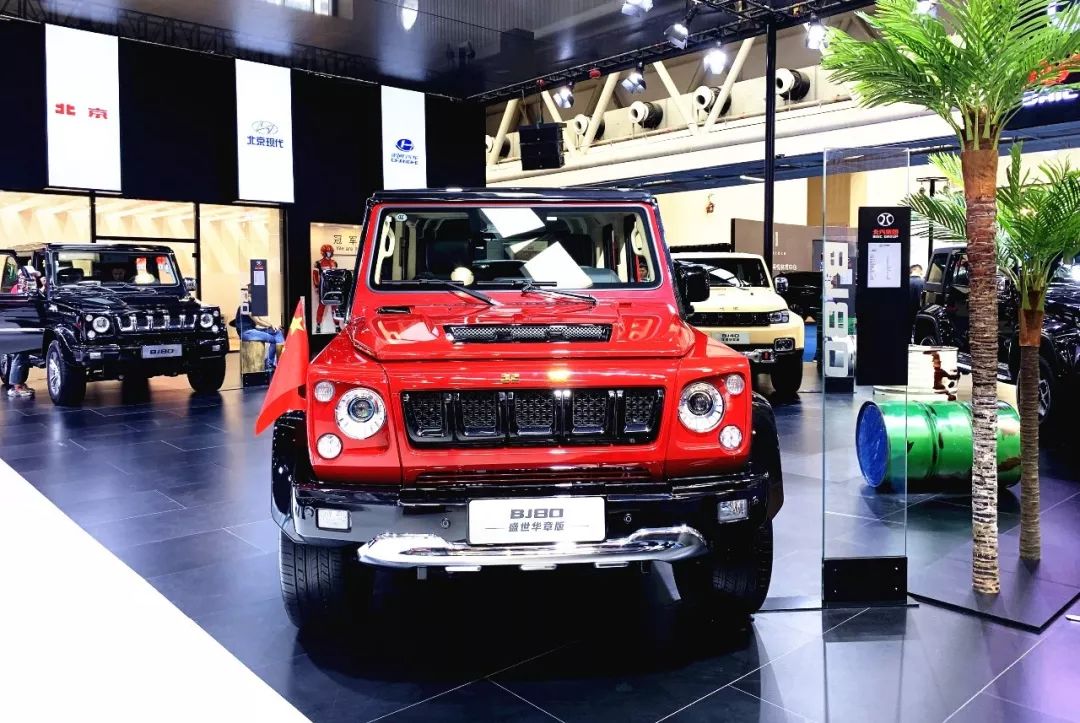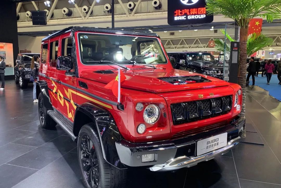 伴随着国庆盛典的热烈气氛,BJ80盛世华章版在北汽集团展台登场亮相。该车型采用火焰红配色,车顶及后视镜采用亮黑色涂装设计,动力上配置2.3T涡轮增压发动机及6速自动变速箱。