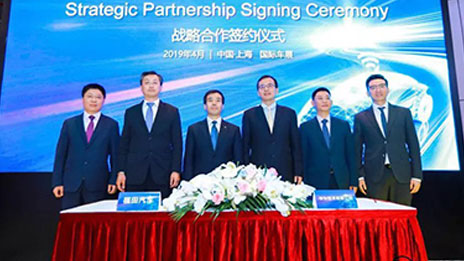 4月17日,在2019年上海国际车展上,北汽福田与华为正式签署战略合作协议,双方将整合优势资源,在车载计算与智能驾驶、智能网联、智能互联、智能能源、智能制造、云服务、云计算和信息化等领域开展战略合作,开启5G时代商用车全智能化体系建设。北汽集团总经理、北汽福田董事长张夕勇,北汽福田党委书记、总经理巩月琼,华为技术有限公司战略部总裁张文林,华为公司汽车解决方案部总经理何利扬,华为技术有限公司汽车行业解决方案部副总经理王隽共同出席签约仪式。
