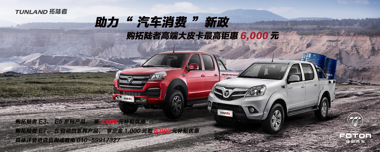 皮卡车型成为政策惠及的新板块。作为北汽福田旗下皮卡车型品牌的福田拓陆者系列,是此次《方案》公布后最早依据方案提出实质性惠民政策的汽车品牌之一。春节期间,福田拓陆者针对农村用户推出了响应新政的优惠政策:持有农业户口购买E3、E5产品的用户,在享受国家提供10%的补贴基础上,再直接享受3000元的厂家补贴优惠,这意味着购买E5可最高直享2万元的优惠补贴。