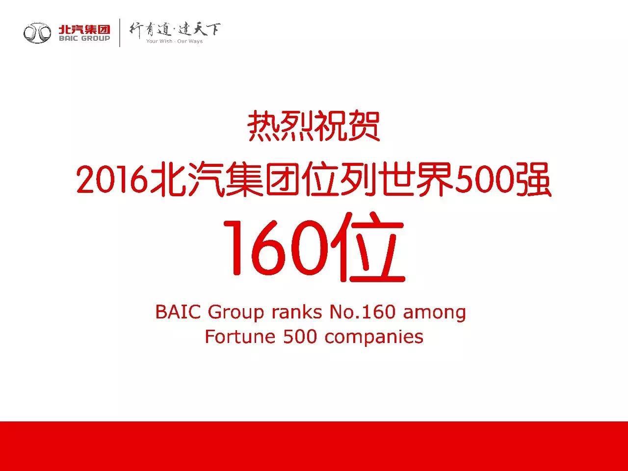 美国东部时间2016年7月20日早7时,北京时间2016年7月20日晚上7时|19时,美国《财富》杂志正式公布“2016年世界500强企业”名单。北汽集团以54932.9百万美元营业收入,排名第160位,比上一年度提升47位。北汽集团再次晋级“世界500强”,并首次进入前200名,为北汽集团“十二五”的完美收官和“十三五”良好开局再谱新篇。