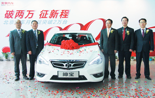2013 年10 月,北京汽车总销量达到25071 辆,其中,北汽绅宝1000 辆以上、北汽E 系列8008 辆、北汽威旺16000 辆。在竞争日益激烈的汽车市场,作为不折不扣的“新军”,北京汽车以一连串令人瞠目的数字,在传统汽车市场杀出一条血路,为自主品牌重新标定了“火速”增长的新纪录,彰显了“北京速度”。跨越月销20000 辆的门槛,北京汽车只用了两年多的时间,这背后也凝聚了所有北京汽车人的心血和智慧,以及广大经销商对北京汽车的大力支持。
