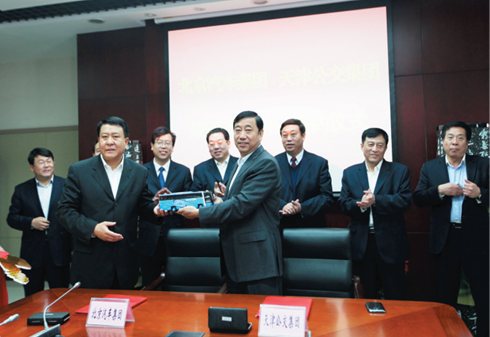 4月24日,北汽集团与天津公交集团举行战略合作协议签约仪式,北汽集团党委书记、董事长与天津公交集团党委书记、董事长于秉华在协议书上签字。此举旨在促进产业资源优化整合,加速天津市城市公共交通发展,双方依托各自的品牌优势、技术优势、管理优势和企业优势,进一步做大做强汽车产业,为推动中国汽车行业和中国公交事业发展做出新的更大的贡献。