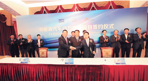 新能源汽车产业是中国重点发展的战略性新兴产业,在北京市产业规划中明确提出了要加快发展新能源汽车产业,在全国率先形成行业影响和示范效应。在北京市委、市政府的领导下,北汽集团与北京电控结成战略联盟,充分发挥北汽的整车制造优势和北京电控的电子技术优势,在打造北汽世界一流、国内领先的新能源汽车产业的过程中,形成高端电池及先进成组技术的配套能力。为进一步加强动力电池相关领域的技术研发,双方积极寻求具有世界先进水平的动力电池企业进行合作。经过几十轮的交流与考察,最终与韩国SK Innovation达成战略合作意向性共识。