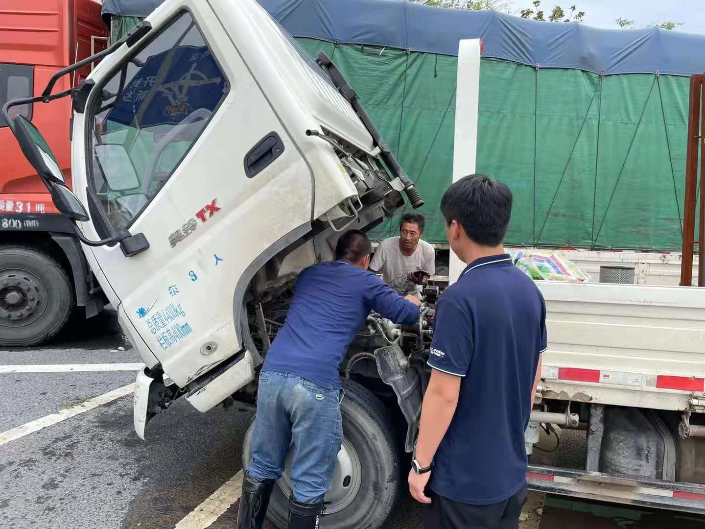 福田奥铃轻卡郑州荣发店在确保全体员工安全的前提下,第一时间组织救援队伍,参与受灾严重地区的救援工作。7月21日上午,奥铃轻卡救援服务队接到求助信息,迅速赶往事发地,救助了一位在水中被困两天一夜的奥铃轻卡司机,为客户清理积水,更换滤芯,重新启动车辆。